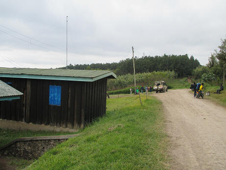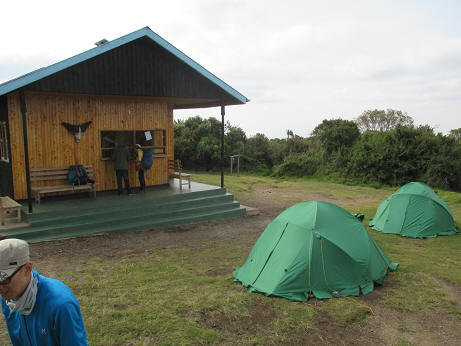 今日の宿泊地・シンバキャンプに到着。奥の小屋は管理人レンジャー小屋。ここで到着の際に記入します。