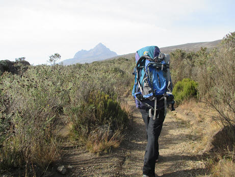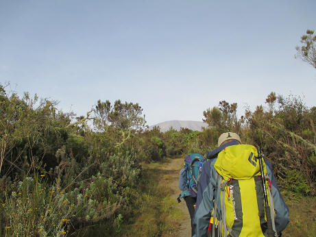 空が開けて、キボ峰・マウェンジ峰が見えてきたらもうキャンプ地はすぐ近くです。