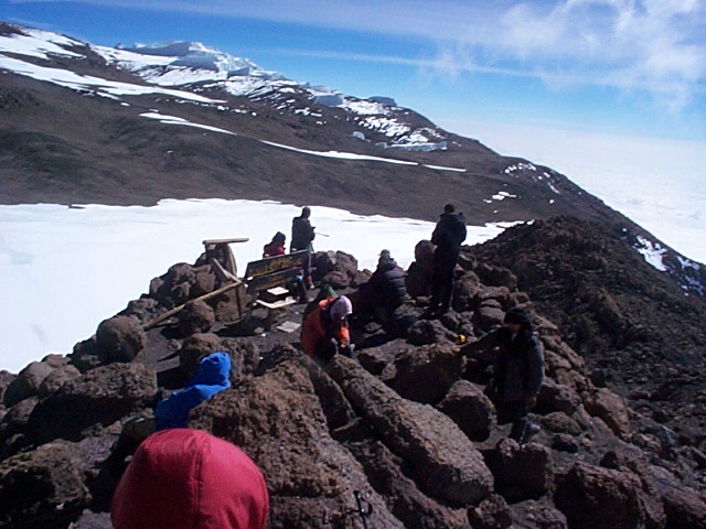 目的地がギルマンズポイントまでなので、明日の出発は遅めの早朝2時。さすがの「あいのり」もここでは撮影なし。僕は早速近くの岩に登り、オフィスと奥さんに電話を入れる。